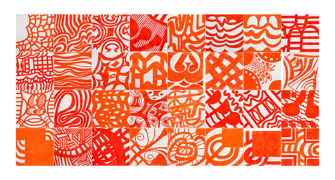 comprised of thirty-two 16" squares